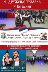 Zavičajno udruženje Tuzlaka u Bijeljini, pod pokroviteljstvom Grada Bijeljina, 9. put organizuje već tradicionalo veliko druženje Tuzlaka koje će se održati u subotu, 7. februara 2026. godine u Svečanom salonu „Grand“ u Bijeljini od 18.00 časova. Ulaznice u prodaji od 12. januara, u kancelariji Svečanog salona “Grand” u Bijeljini.