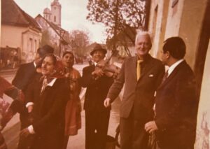 („Lazarice“ pred kućom Magdalene Živanović i advokatskom kancelarijom Slavka Crnojačkog u društvu Jovice Purića)