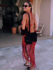 Crveni bikini je iskombinovala s mrežastom suknjom u istoj boji, a na Instagramu je napisala da su joj dani na Ibici bili nešto posebno. Otkrila je da se nerado vraća „nazad u realnost“ – trenerkama i vožnjama u školu.