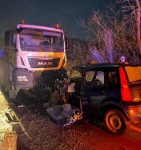 U stravičnoj saobraćajnoj nezgodi na putu Rudna Glava-Majdanpek, vozač automobila poginuo je na licu mjesta u direktnom sudaru sa kamionom.