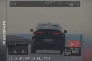 Prekršaj je otkriven presretačem na deonici auto-puta Ruma–Šabac, gde je ograničenje brzine 130 kilometara na čas, saopštilo je Ministarstvo unutrašnjih poslova.