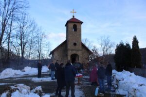 U porti manastira Svetog proroka Jeremije u Rožnju na Majevici je, po tradiciji prvog dana pravoslavne Nove godine, naložen badnjak, a prethodno su u svetinji monasi Jelisej i Vartolomej služili večernju molitvu.