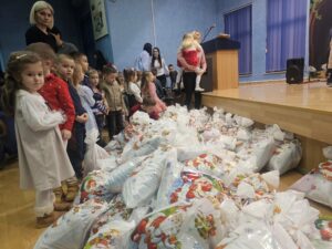 Manifestacija je protekla u prazničnoj atmosferi, uz osmijehe i radost najmlađih, kojima su paketići uljepšali predstojeće novogodišnje praznike.